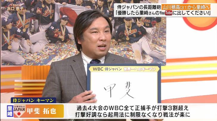 里崎智也「世界一キーマンは甲斐、WBC過去大会で捕手が全員打っている」 2023年01月26日 カテゴリ:WBC・プレミア12・日本代表 1: それでも動く名無し 2023/01/26(木) 06:41:04.96 ID:PrEFjt6Ua 世界一奪還のキーマンにソフトバンクの甲斐拓也捕手(30)を指名し、過去大会を例に「捕手が全員打っている」と解説した。 「甲斐選手が打てるかどうかが試合のカギになる」。過去4大会では捕手の打力が勝利につながった。 https://news.yahoo.co.jp/articles/3265be81cd382af0f62d5a8b59268a1a3b29ff6b 【里崎智也「世界一キーマンは甲斐、WBC過去大会で捕手が全員打っている」】の続きを読む タグ :#2023WBC#キーマン#里崎智也#甲斐拓也#捕手