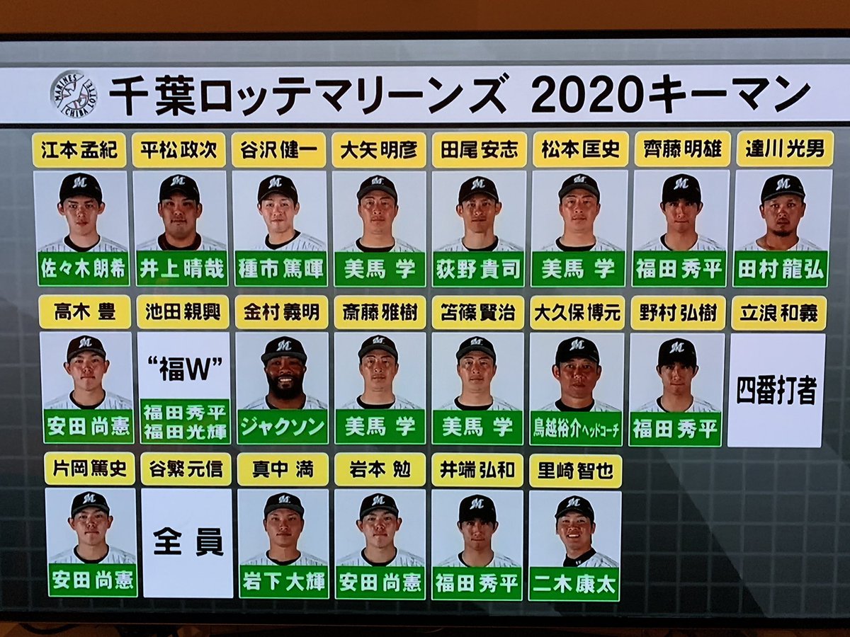 今年のロッテのキーマンは誰になる…? 2020年06月02日 カテゴリ:千葉ロッテマリーンズ 51: 風吹けば名無し 2020/06/01(月) 23:57:46.76 ID:XXt4qaYb0 ロッテの開幕オーダーとか漁ってみたんだがこれもしかして今年結構強くね? いきなり負け越しは嫌だなあ 【今年のロッテのキーマンは誰になる…?】の続きを読む タグ :#ロッテ#キーマン#中村奨吾#福田秀平#井上晴哉#岡大海