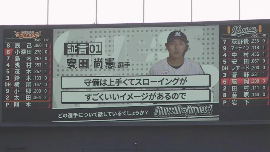 ロッテイニング間の新イベントクイズ、流れが面白すぎる 2021年04月01日 カテゴリ:千葉ロッテマリーンズ 989: 風吹けば名無し 2021/03/31(水) 14:32:44.99 ID:r/7B8cWC0 なんや証言って ※イニング間でスコアビジョンに出る新イベント(クイズ) 【ロッテイニング間の新イベントクイズ、流れが面白すぎる】の続きを読む タグ :#ロッテ#クイズ#安田尚憲#田村龍弘#荻野貴司#二木康太#藤岡裕大