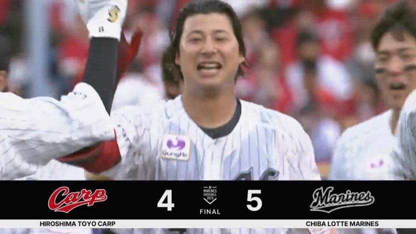 勝負を決めたのは #髙部瑛斗 選手!粘り強くライト前へ運び、サヨナラ勝ち!#chibalotte #MarinesBaseball #CLM30th pic.twitter.com/LuOG9gc1z4