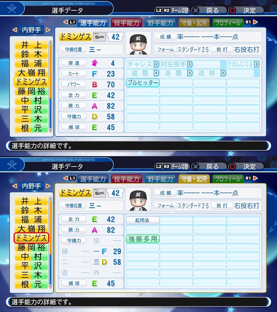 画像 ロッテ・ドミンゲス内野手、帰国…(マイライフ) 2018年08月24日 カテゴリ:千葉ロッテマリーンズパワプロ 1: 風吹けば名無し@\(^o^)/ 2018/08/19(日)22:09:03 ID:ap7 パワプロ2018(PS4&VITA) 憧れ現役選手編マット・ドミンゲス球団 千葉ロッテマリーンズ年俸 9000万MLB通算42本塁打の実績を持つ助っ人大砲NPBでも自慢のパワーを発揮させチームに勝利をもたらす 【画像 ロッテ・ドミンゲス内野手、帰国…(マイライフ)】の続きを読む タグ :#ロッテ#ドミンゲス#パワプロ#マイライフ