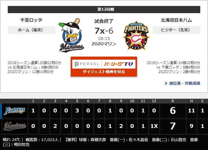 — パ・リーグ.com / パーソル パ・リーグTV公式 (@PacificleagueTV) 2018年5月24日
