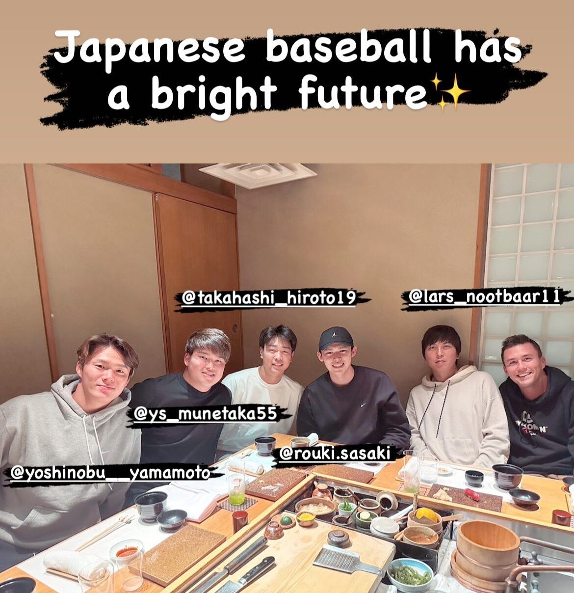 画像 ヌートバー、謎の組み合わせで食事に行く 2023年03月15日 カテゴリ:WBC・プレミア12・日本代表 1: 風吹けば名無し 2023/03/14(火) 22:52:16.16 ID:vVs4BTO50 https://www.instagram.com/stories/ippei1231/3058318866584500628/ 【画像 ヌートバー、謎の組み合わせで食事に行く】の続きを読む タグ :#ヌートバー#佐々木朗希#山本由伸#村上宗隆#髙橋宏斗#水原一平#侍ジャパン