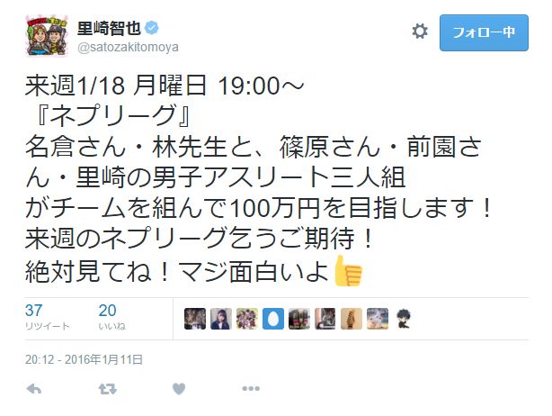 来週のネプリーグにまたも里崎!! 2016年01月11日 カテゴリ:OB・元プロ野球選手 1: 風吹けば名無し@\(^o^)/ 2016/01/11(月) 19:57:12.73 ID:ugv6KEYYd.net これは録画不可避 https://twitter.com/satozakitomoya/status/686520977581326336 【来週のネプリーグにまたも里崎!!】の続きを読む タグ :#里崎智也#ネプリーグ