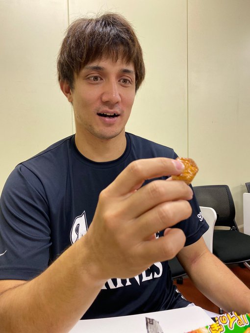 「今日は勝てて、パイの実のおいしさの秘訣を知れて、良かったです!また火曜日から頑張ります」とクニ様こと #国吉佑樹 投手。#chibalotte #広報 pic.twitter.com/6VOz2W2hYq