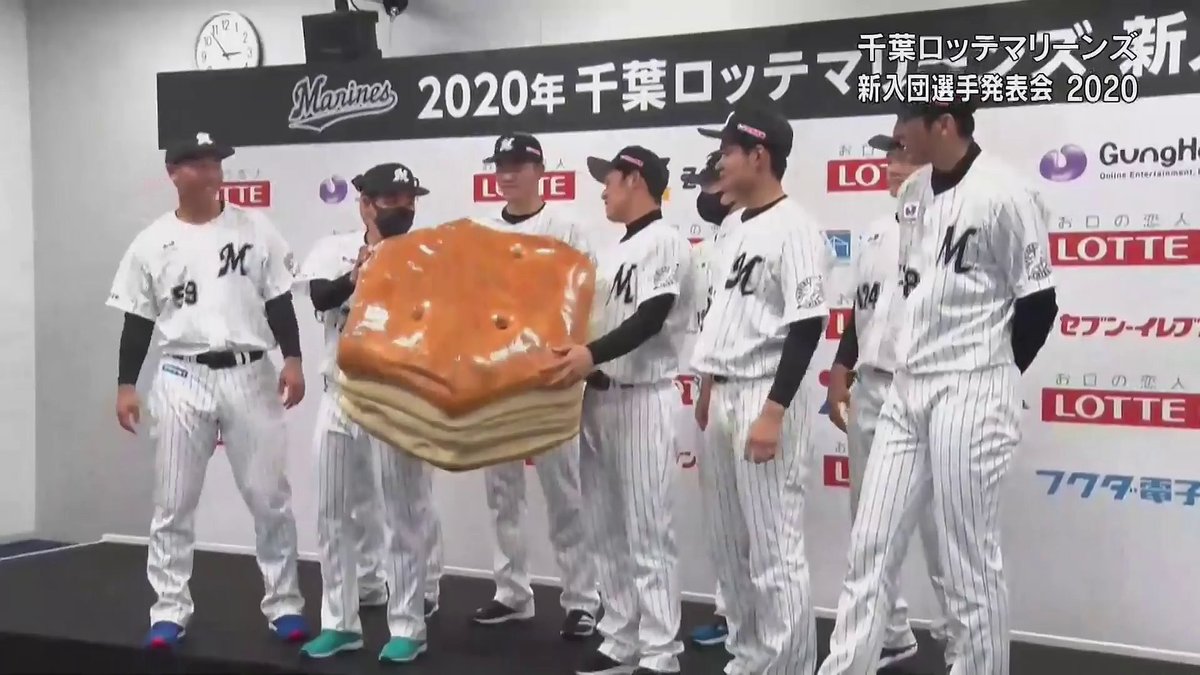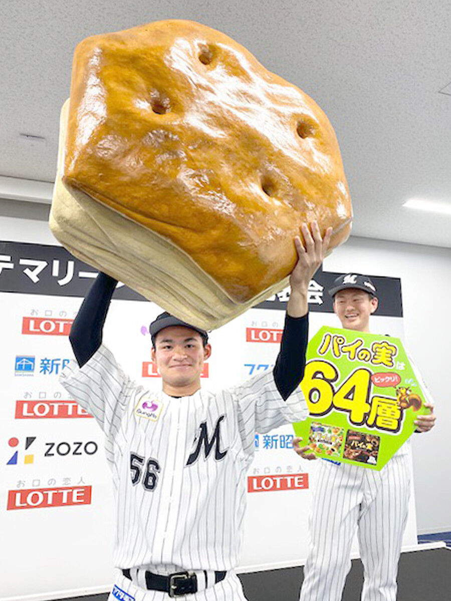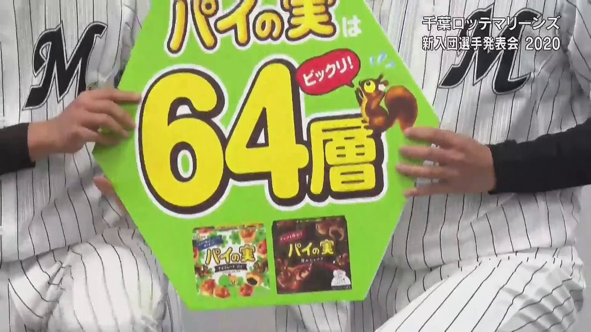 パイの実が64層になっていることに驚く千葉ロッテ新入団選手の皆様。