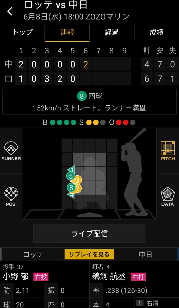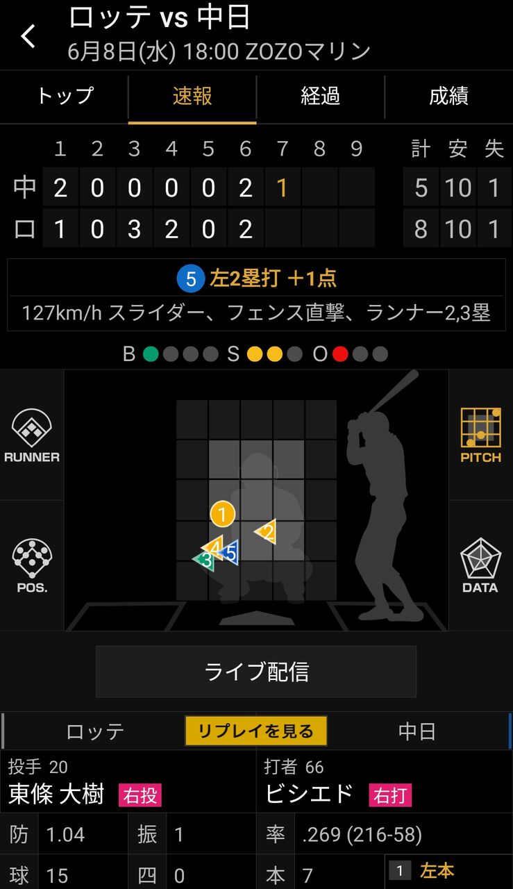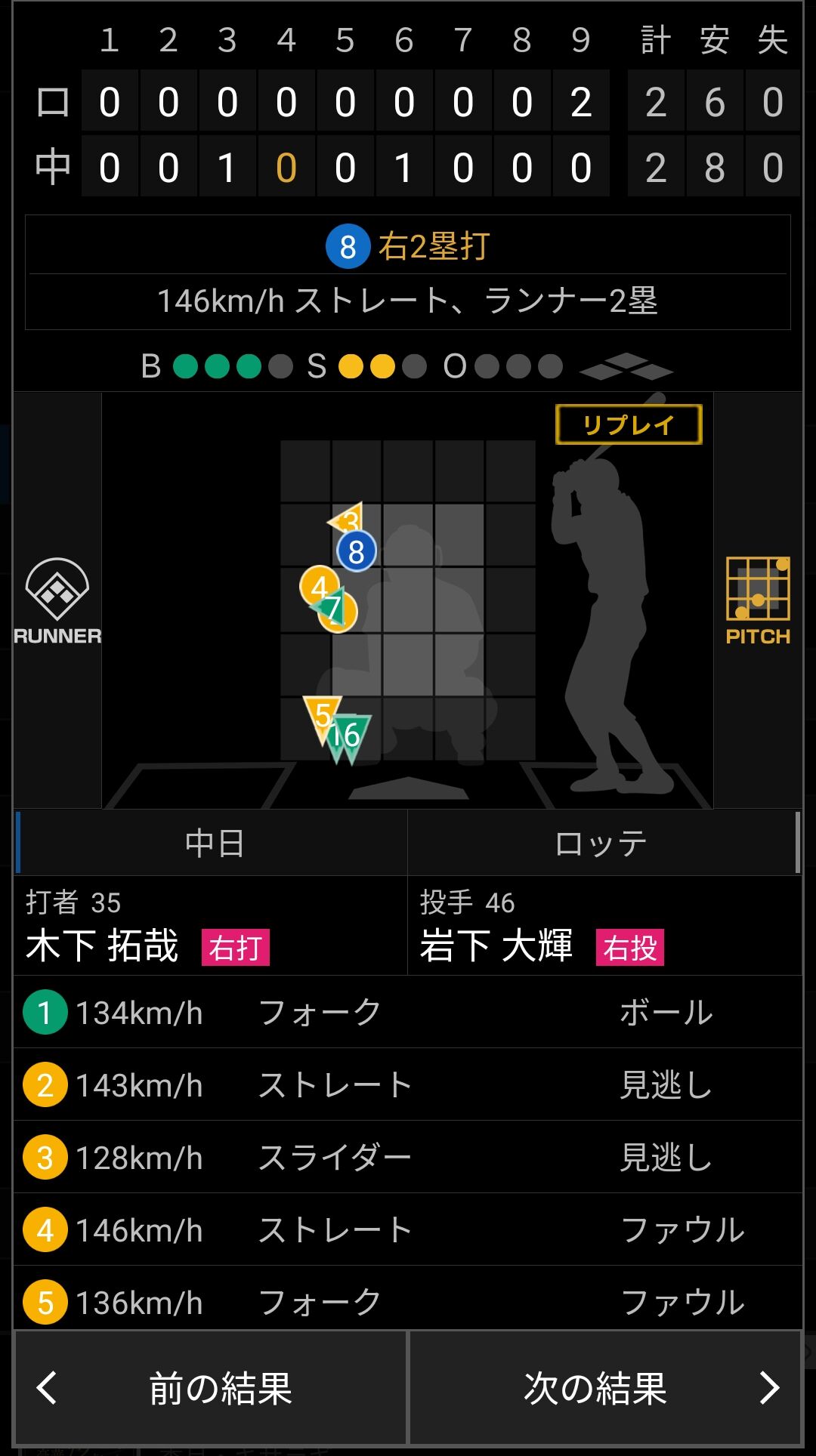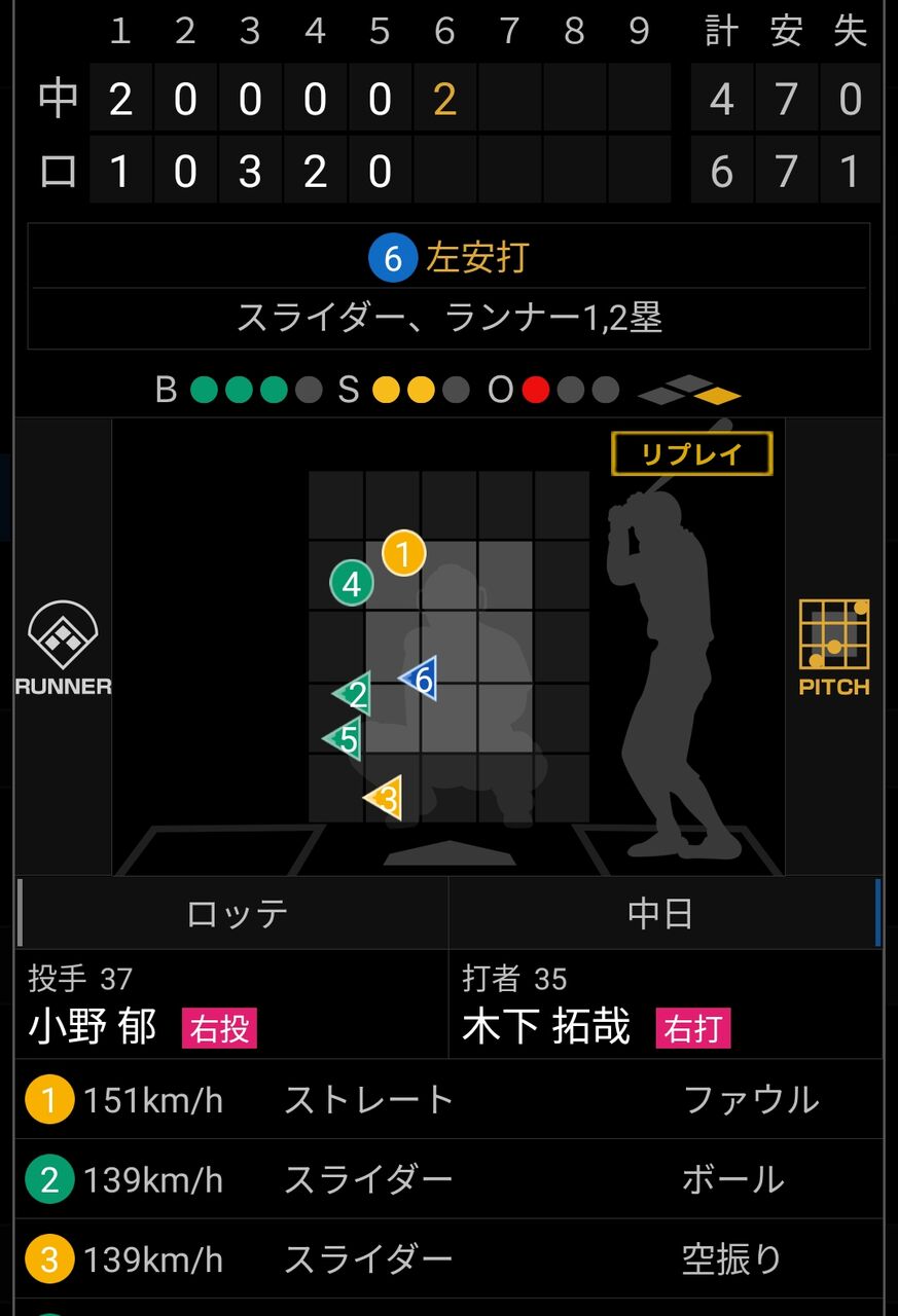 以前、多くの打者から空振りを奪っていたカーブも、また、見せ球のストレートも、しっかりと見極められ、