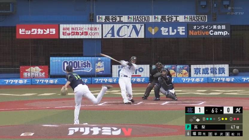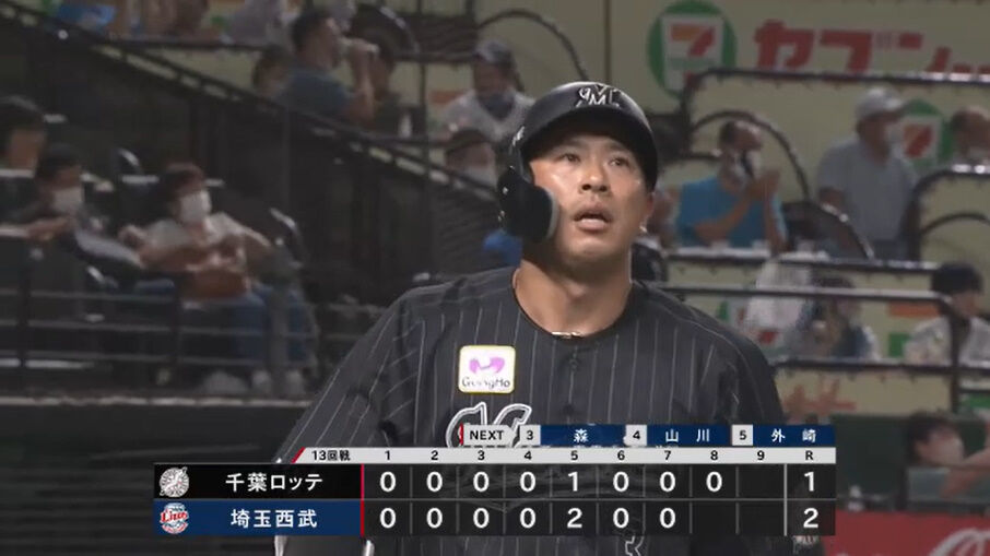 ロッテ角中勝也(35) 三振率.391(64-25)
