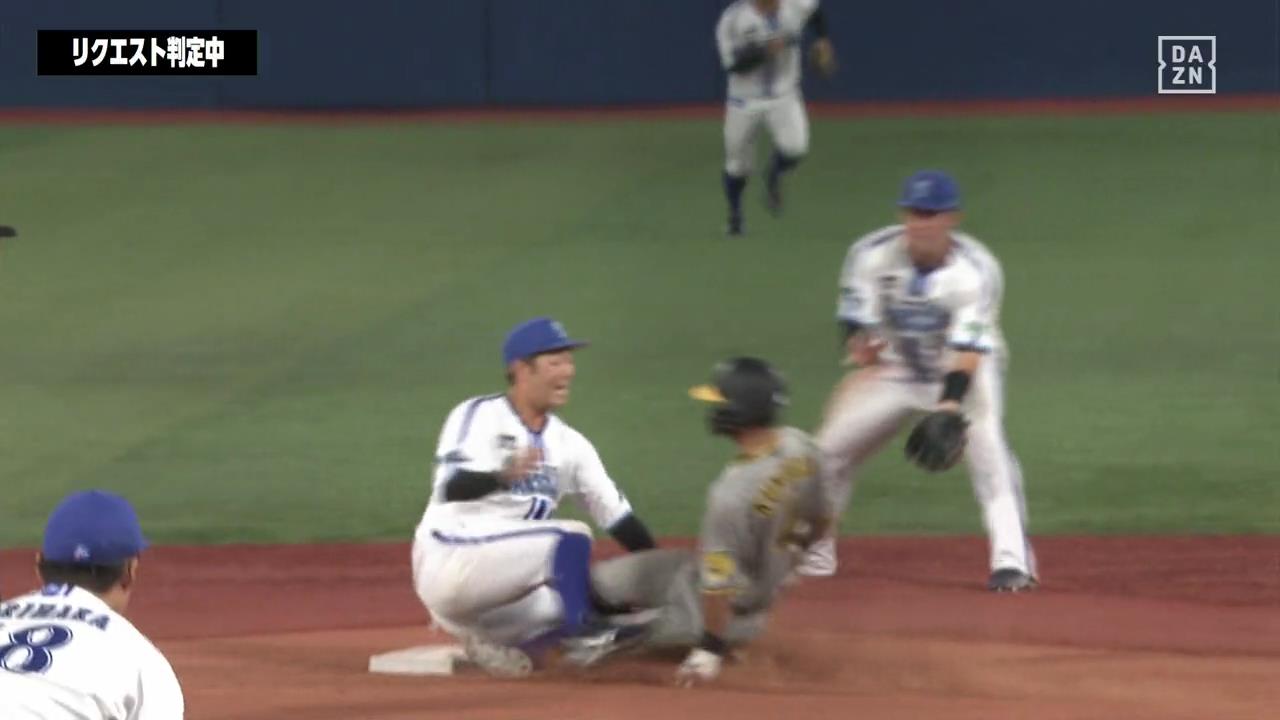 接触したショート京田陽太のプレーは妨害とは判断されず