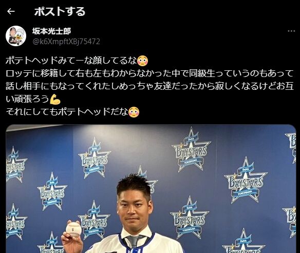 坂本光士郎さん「ポテトヘッドみてーな顔してるな」 2023年12月11日 カテゴリ:千葉ロッテマリーンズ横浜DeNAベイスターズ 852: どうですか解説の名無しさん 2023/12/11(月) 15:04:25.40 ID:sunR14ckd 【坂本光士郎さん「ポテトヘッドみてーな顔してるな」】の続きを読む タグ :#ロッテ#坂本光士郎#DeNA#佐々木千隼#chibalotte#ポテトヘッド