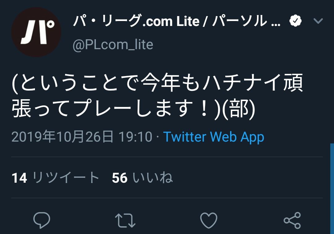— パ・リーグ.com Lite / パーソル パ・リーグTV Lite (@PLcom_lite) 2019年10月26日