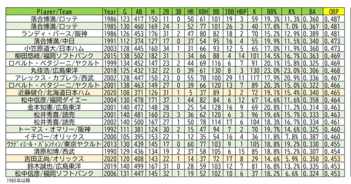 巨人 2018 丸 佳浩 .468 坂本勇人 .424