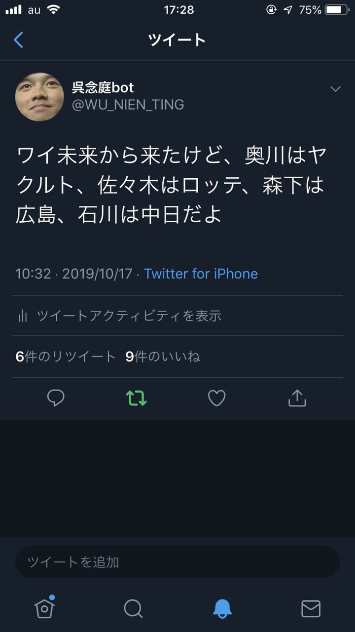 — 呉念庭bot (@WU_NIEN_TING) 2019年10月17日