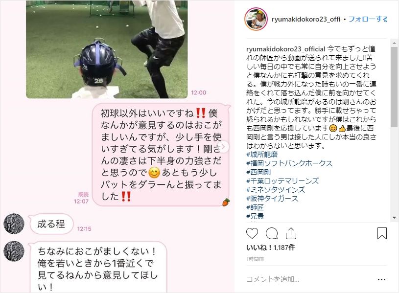 僕なんかにも打撃の意見を求めてくれる。僕が戦力外になった時もいの一番に連絡をくれて落ち込んだ