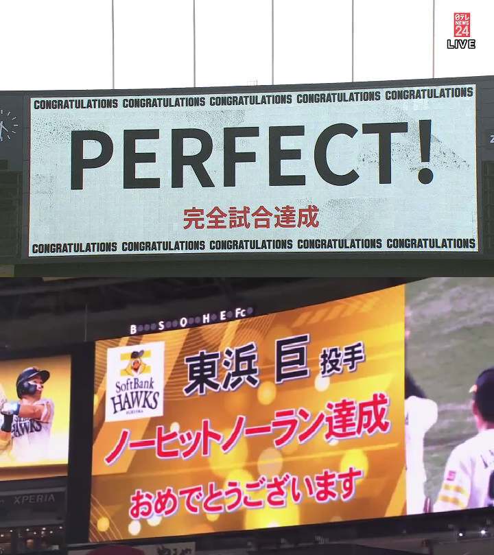 佐々木朗希完全試合、大野実質完全試合、東浜ノーノー