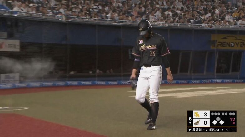 相手ミス&岡のタイムリー2ベース!ロッテこの回一挙3得点で逆転!!