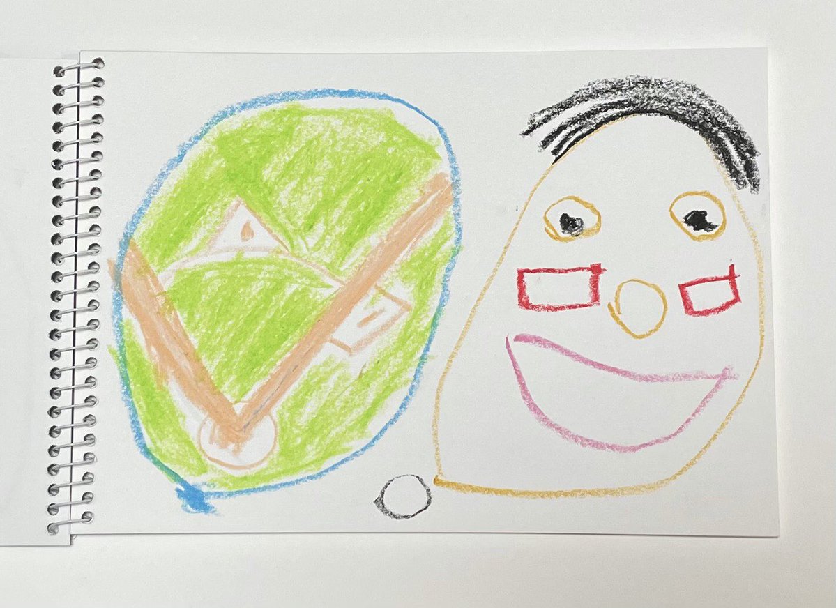 日刊スポーツ紙面に掲載いただいた #荻野貴司 選手の4歳長男が描いたパパとZOZOマリンスタジアムです。パパ大好きでは足らないようで、パパ大好きすぎる!と言うそうです。金曜日からまたパパに頑張ってもらいましょう!#chibalotte #広報 #こどもの日 pic.twitter.com/SA3fiH6puY