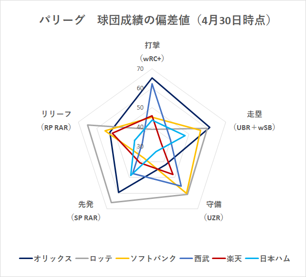 パリーグ 球団成績別得点積み上げ(4月30日時点) pic.twitter.com/crXnIVtlrL