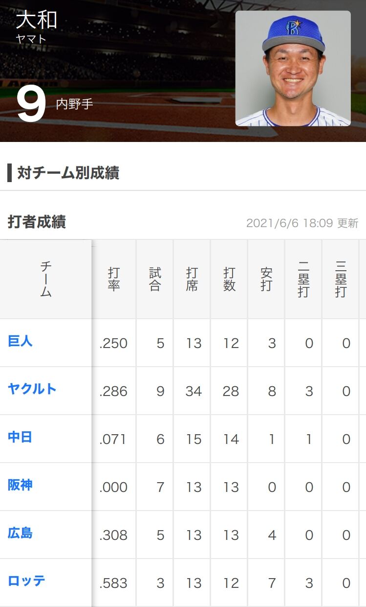 DeNA大和さん、対ロッテ打率.583で敬遠なし→サヨナラ打 2021年06月06日 カテゴリ:千葉ロッテマリーンズ横浜DeNAベイスターズ 116: 風吹けば名無し 2021/06/06(日) 17:33:35.80 ID:UwVb/D2S00606 大和、対ロッテ打率6割超え 【DeNA大和さん、対ロッテ打率.583で敬遠なし→サヨナラ打】の続きを読む タグ :#ロッテ#DeNA#大和#サヨナラ打#敬遠
