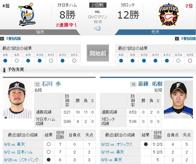 日ハム・斎藤佑樹、明日ロッテ戦で今季初勝利狙う 2015年09月15日 カテゴリ:北海道日本ハムファイターズ千葉ロッテマリーンズ 1: 風吹けば名無し@\(^o^)/ 2015/09/15(火) 07:56:02.93 ID:601te4Wea.net 2軍調整中の日本ハム斎藤佑樹投手(27)が、再び1軍の舞台に帰ってくる。16日ロッテ戦(QVCマリン)で先発する予定。 8月22日オリックス戦で黒星を喫し翌23日、出場選手登録を抹消され再調整を続けてきた。今季は5試合に先発し好投を見せながらも未勝利。シーズン終盤に訪れたチャンスで待望の白星を狙う。 http://www.nikkansports.com/m/baseball/news/1537019_m.html?mode=all 【日ハム・斎藤佑樹、明日ロッテ戦で今季初勝利狙う】の続きを読む タグ :#日ハム#斎藤佑樹#ロッテ