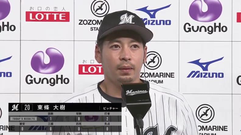 本日のヒーロー2人目!好リリーフをみせた #東條大樹 投手のヒーローインタビューです!#chibalotte #MarinesBaseball #TodaysHero pic.twitter.com/IC2TPg3SiQ