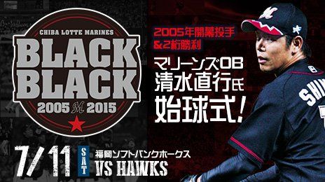 ロッテ、11日ホークス戦で05年ユニフォーム配布&清水直行が始球式 2015年07月10日 カテゴリ:千葉ロッテマリーンズ福岡ソフトバンクホークス 1: 風吹けば名無し@\(^o^)/ 2015/07/10(金) 07:11:36.12 ID:XMndgG6Q0.net 「ブラックブラックナイト」として開催される7月11日の福岡ソフトバンク戦(QVCマリン)が間近に迫ったロッテ。 当日は、来場者全員に2005年のビジターユニフォームのレプリカがプレゼントされるほか、同年に開幕投手を務めたOBの清水直行氏(現・ニュージランド野球連盟GM補佐)が当時のビジターユニフォームを身にまとい、始球式を務める。 今江敏晃は「05年のビジターユニフォームは自分にとっても思い出深いものです。11日はたくさんのファンの方が応援に来ていただけると聞いています。ぜひこのユニフォームでスタンドを真っ黒に染めていただき、一緒に盛り上がりたい思います」とコメント。 現在、前売り指定席券は残りわずかとなっており、当日券の販売は球場にて15時から行われる予定だ。当日券の販売予想も含め、4月29日の埼玉西武戦以来となる3万人超えが予想されている。 http://headlines.yahoo.co.jp/hl?a=20150709-00010007-fullcount-base 【ロッテ、11日ホークス戦で05年ユニフォーム配布&清水直行が始球式】の続きを読む タグ :#ロッテ#ソフトバンク#2005年#清水直行