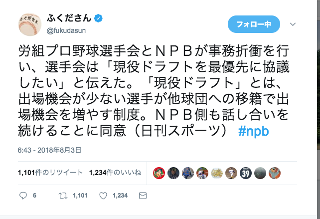 22日には選手会と事務折衝を行い、選手会側が合意すれば、出場機会の少ない選手を対象とした新ルールの今季導入が現実になる。