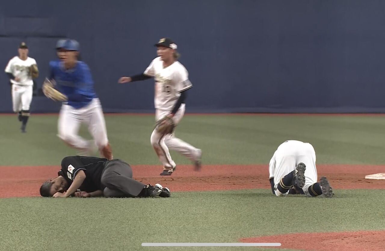 動画 白井塁審、選手と激突…