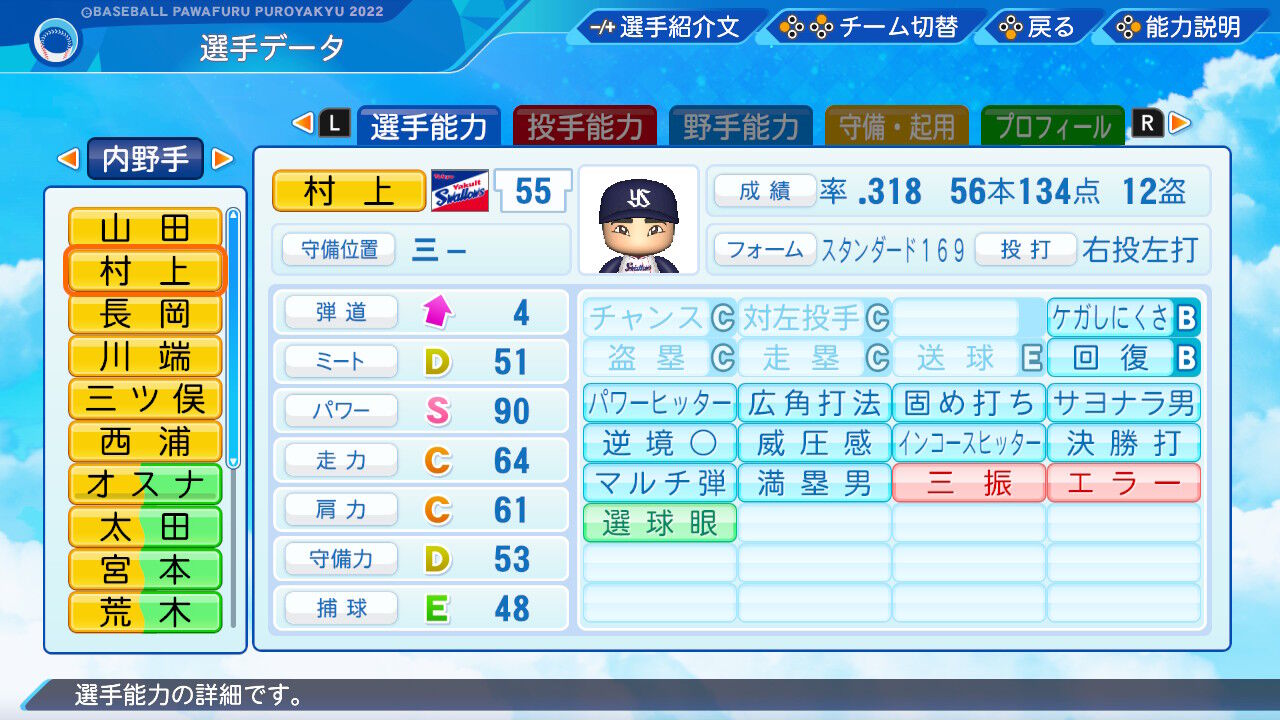 今年の12球団ドラフト1位指名選手をパワプロ査定してみた 2023年10月30日 カテゴリ:パワプロ 1: それでも動く名無し 23/10/29(日) 08:49:55 ID:TllX セ下村海翔155キロコントロールC65スタミナD60カットボール4カーブ1フォーク1常廣羽也斗155キロコントロールE47スタミナC69スライダー2カーブ1フォーク4度会隆輝(外/二/三)弾道3ミートC62パワーD58走力D55肩力C62守備力E48エラーE40西舘勇陽155キロコントロールB72スタミナD58スライダー2カーブ2SFF3西舘昂汰152キロコントロールE48スタミナD59スライダー2カーブ1チェンジアップ1草加勝153キロコントロールC60スタミナB70スライダー2カーブ1シンカー3 2: それでも動く名無し 23/10/29(日) 08:50:21 ID:TllX パ横山聖哉(遊)弾道2ミートF38パワーE49走力D55肩力C68守備力E42エラーE40上田希由翔(一/三/外)弾道3ミートD58パワーC62走力D52肩力E49守備力E45エラーE40前田悠伍149キロコントロールD50スタミナD55スライダー1カーブ1チェンジアップ3古謝樹153キロコントロールD59スタミナC65ツーシームスライダー2チェンジアップ2武内夏暉153キロコントロールC68スタミナB75ツーシームスライダー3チェンジアップ2細野晴希158キロコントロールF22スタミナB78スライダー3カーブ1フォーク2 【今年の12球団ドラフト1位指名選手をパワプロ査定してみた】の続きを読む タグ :#パワプロ#能力査定#ドラフト1位