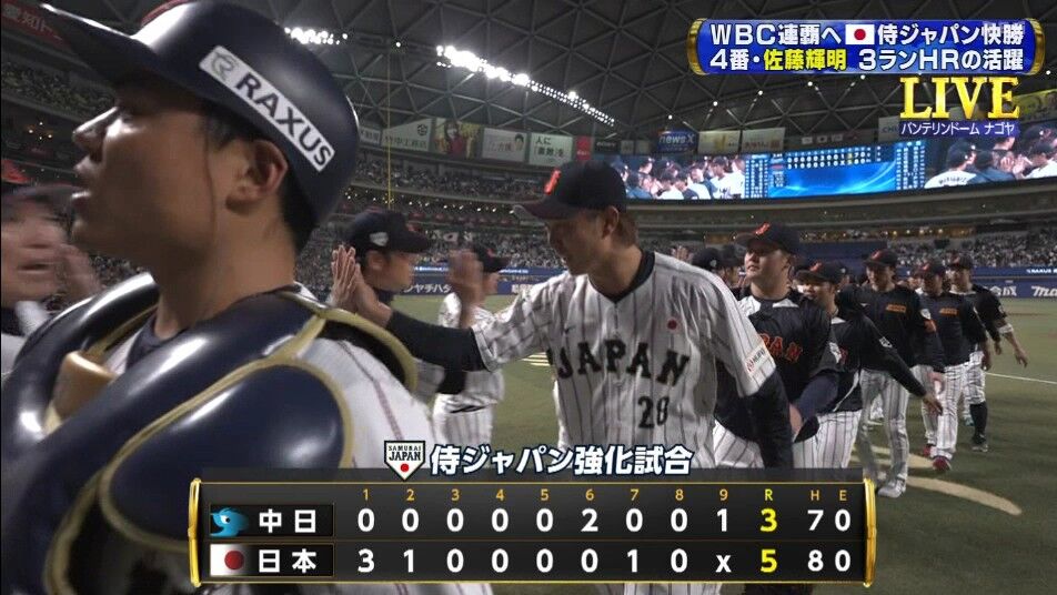 2月27日 侍ジャパン5-3中日 初回から佐藤の3ランで先制!種市・山本大のロッテ勢も活躍し勝利! 2026年02月27日 カテゴリ:WBC・プレミア12・日本代表 906: 名無しさん 2026/02/27(金) 21:52:33.690 ID:2W9O3G7Qy あぶねえええええええええええええええええええええええええええ ※GIF画像 【2月27日 侍ジャパン5-3中日 初回から佐藤の3ランで先制!種市・山本大のロッテ勢も活躍し勝利!】の続きを読む タグ :#侍ジャパン#中日#試合結果