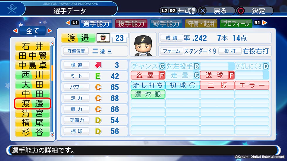 ※パワプロ2022アプデ後の選手能力www①画像 パワプロ2022アプデ後の選手能力www②