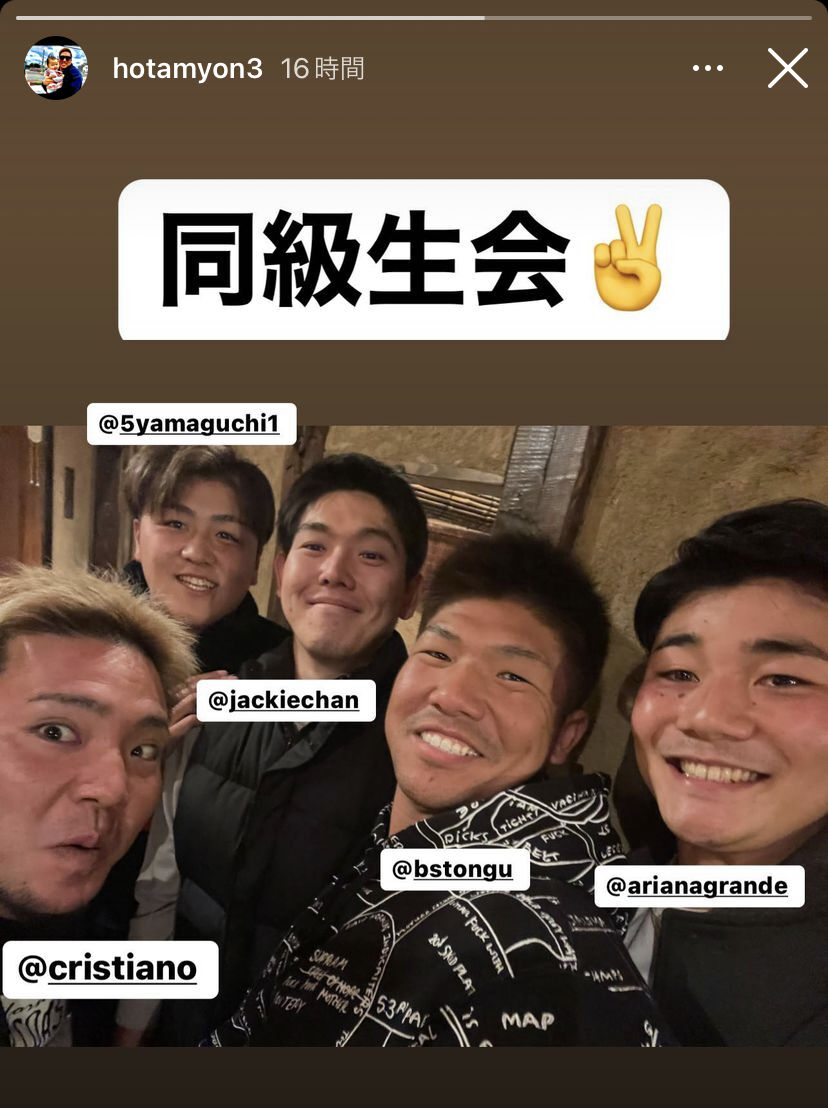 画像 山川穂高さん、アリアナグランデやジャッキーチェンらと食事する 2022年12月21日 カテゴリ:埼玉西武ライオンズ千葉ロッテマリーンズ 513: それでも動く名無し 2022/12/20(火) 23:49:59.99 ID:C7b4zxKt0 山川のインスタ初めて見たんやけどめちゃくちゃおもろくね? 安田にジャッキーチェン、清宮にアリアナグランデ引っ付けてたの笑ったわ 542: それでも動く名無し 2022/12/20(火) 23:51:34.22 ID:pr+MpLVc0 山川穂高さん、アリアナグランデ・ジャッキーチェン・オリ頓宮らと食事をする 【画像 山川穂高さん、アリアナグランデやジャッキーチェンらと食事する】の続きを読む タグ :#山川穂高#安田尚憲#山口航輝#清宮幸太郎#頓宮裕真