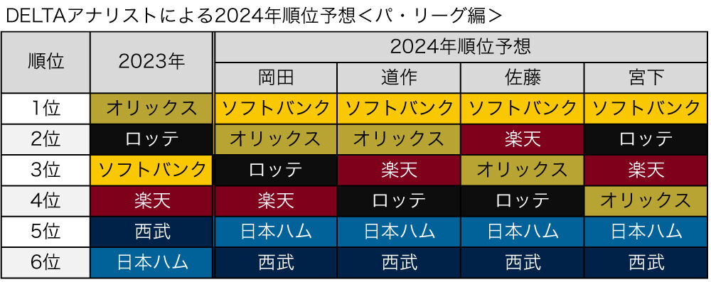 DELTAアナリストによる2024年順位予想 ~パ・リーグ編~|1.02 https://t.co/J8hZF98AVo