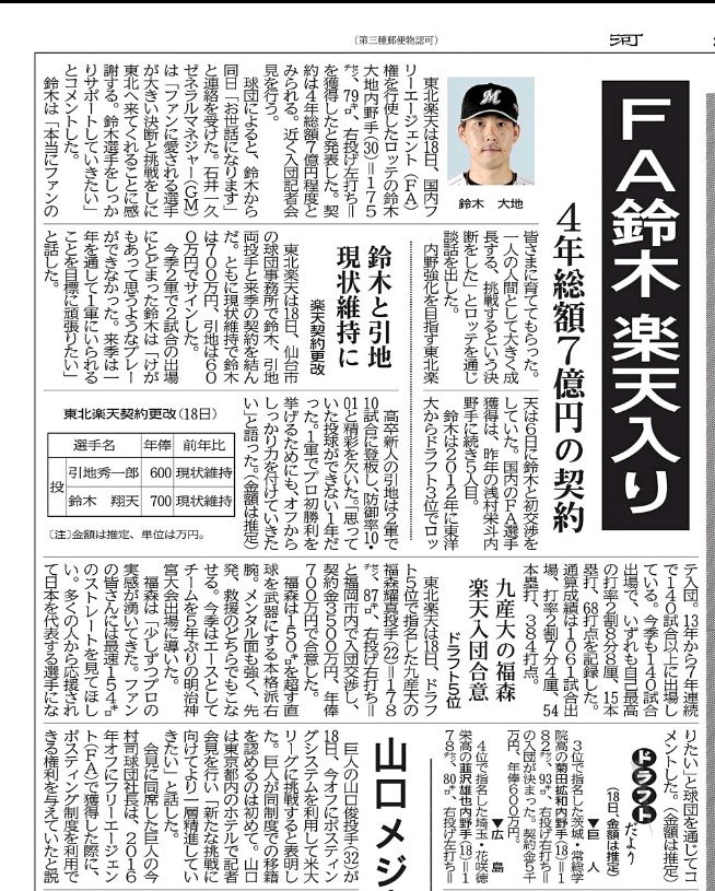 FA三大絶許案件「新井さん」「浅村栄斗」「鈴木大地」 2020年05月07日 カテゴリ:ドラフト・トレード・FA・ポス3大○○ 1: 風吹けば名無し 20/05/05(火)23:32:37 ID:hm8 あと一つは? 【FA三大絶許案件「新井さん」「浅村栄斗」「鈴木大地」】の続きを読む タグ :#FA移籍#新井貴浩#浅村栄斗#鈴木大地