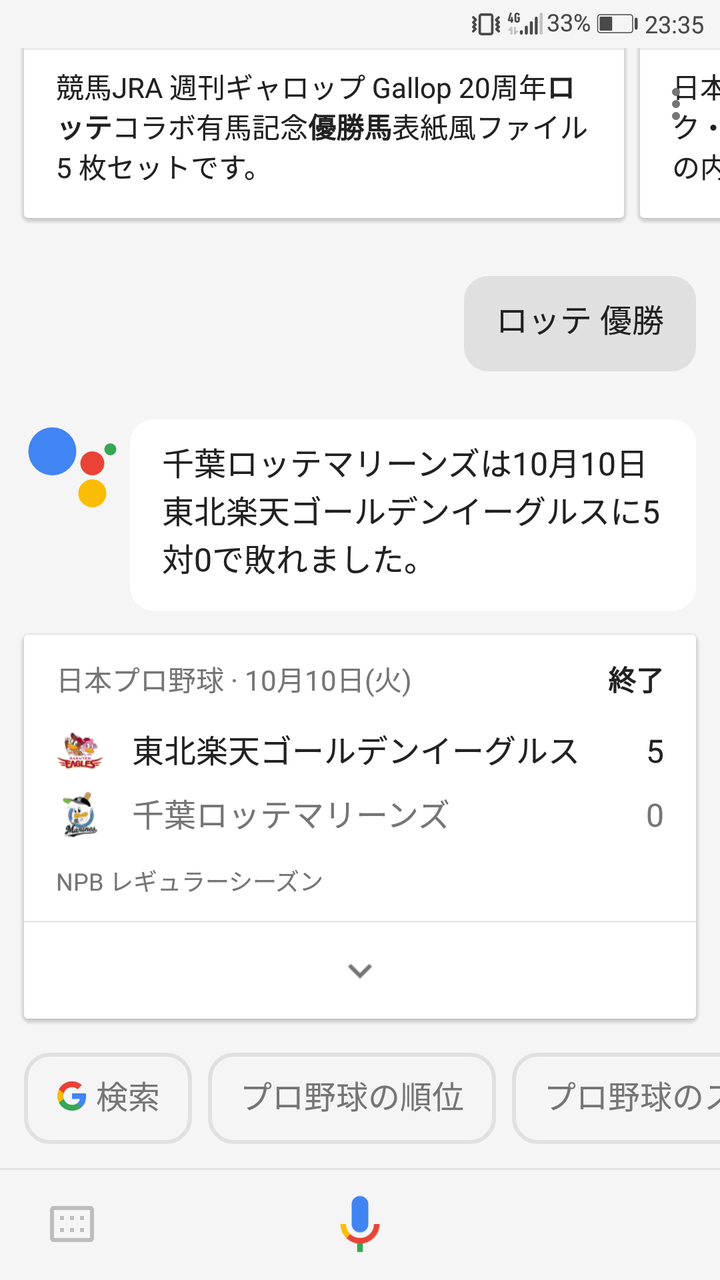 画像 Googleに「ロッテ 優勝」と聞いた結果www 2017年10月23日 カテゴリ:千葉ロッテマリーンズ 1: 風吹けば名無し@\(^o^)/ 2017/10/23(月)09:53:28 ID:GSn 【画像 Googleに「ロッテ 優勝」と聞いた結果www】の続きを読む タグ :#ロッテ#優勝#Google