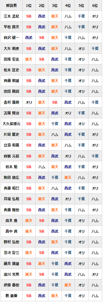 開幕前の解説者セパ順位予想、ド派手に外す… 2022年09月30日 カテゴリ:OB・元プロ野球選手順位(予想) 1: それでも動く名無し 2022/09/29(木) 20:44:49.14 ID:2Y7MYCgO0NIKU 【開幕前の解説者セパ順位予想、ド派手に外す…】の続きを読む タグ :#OB#解説者#順位予想